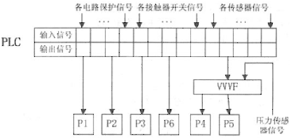 每面柜均設有一個手動/自動轉換開關,該轉換開關為一個三位選擇開關,安裝于二次控制回路中。1位為自動,2位為手動,0位為懸空。選1位時,自動指示繼電器吸合,PLC檢測該繼電器狀態,執行自動控制程序,由PLC控制所有水泵的起、停的切換、包括變頻器的起、停和報警。選2位時,自動指示繼電器分斷,PLC檢測該繼電器的狀態,執行手動程序,PLC只進行檢測報警,此時所有柜面控制按鈕由人工通過柜面上的按鈕和開關進行水泵的起、停和切換,包括變頻器的起、停。需要注意的是在手動狀態下PLC仍處于工作狀態。選擇0位時,此時手動控制電路被切斷,不能控制設備。自動指示繼電器分斷。此時PLC檢測到的信號與選擇手動時一樣,因此PLC執行手動程序,進行故障報警。